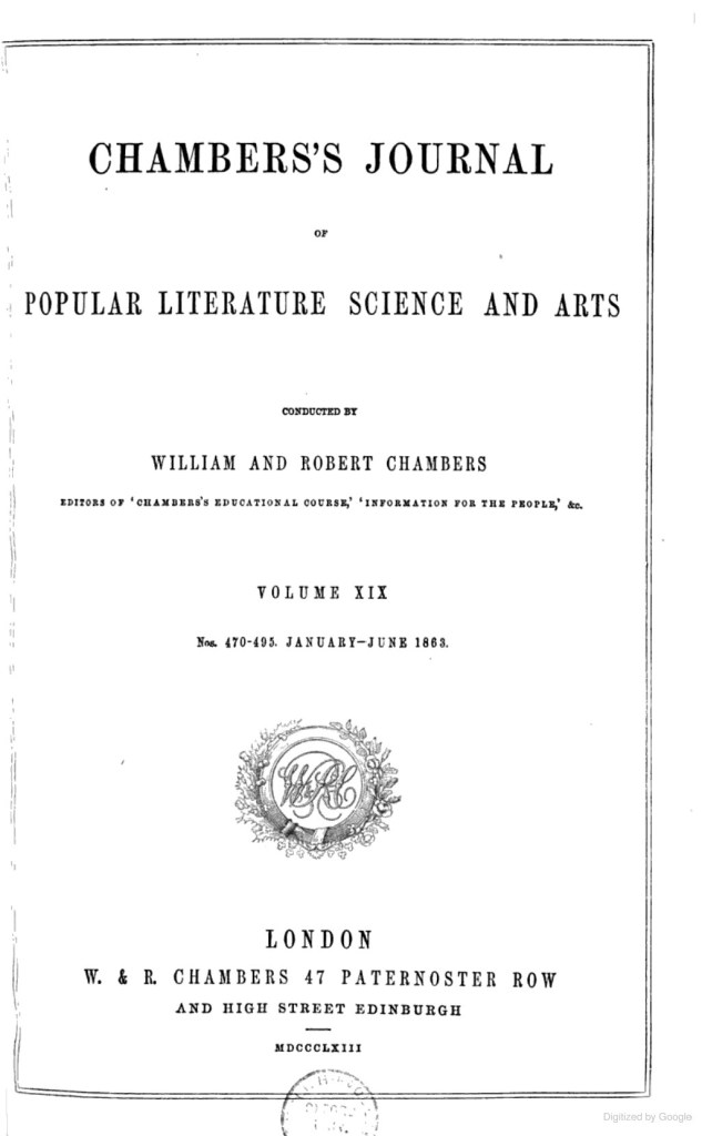 Chambers’s Journal authorship records 1858-1874. This is a collaboration with the Curran Index to transcribe and then analyse the Author ledgers for Chambers’s Journal, initially for the period of the editorship of James Payn, from 1858 to 1874. Details of individual articles will be added to the Curran Index database. The underlying data will be used to explore issues of authorship and periodical production in the middle of the Victorian period. For further details, see here.